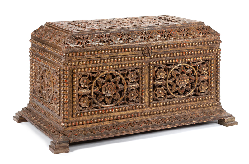 A Southeast Asian Carved Chest Height 29 x width 53 1/2 x depth 33 inches.