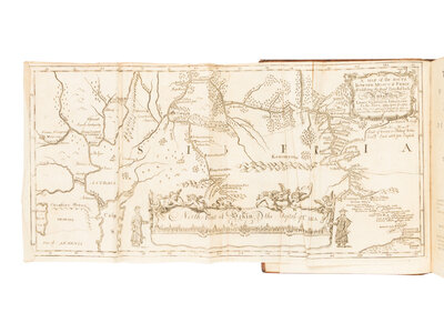 FIRST EDITION of Bell’s account of his remarkable journey from St. Petersburg through Siberia and into China on behalf of the Russian tsar. Bell's narrative includes detailed descriptions of the manners, customs, geography, and scenery in the countries visited. Bell departed St Petersburg on 15 July 1715 and proceeded to Moscow, and from there to Kazan and south along the Volga to Astrakhan. The mission then sailed down the Caspian Sea to Derbent and traveled on to Esfahan in Persia, where they arrived on 14 March 1717. They left Esfahan on September 1 and returned to St Petersburg via Saratov on 30 December 1718. Bell's account of the journey to Kazan and through Siberia to China is possibly the most complete and interesting part of his travels. Of particular note are his descriptions of the Dalai Lama and the Chinese wall, and his residence in Peking. Blackmer 111; Cox I:256; Howgego I:B62.