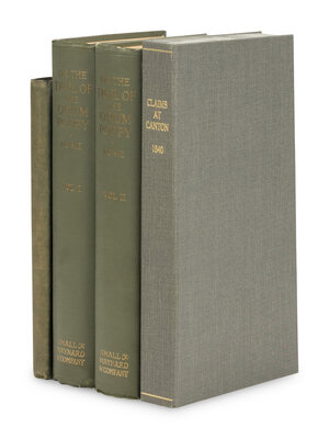 THEWALL, A.S. Rev. The Iniquities of the Opium Trade with China. London: Wm. H. Allen and Co., 1839. Original gilt-lettered green cloth (spine toned). FIRST EDITION. INSCRIBED BY THE AUTHOR. -- [ELIOT, Charles, Capt.]. Statement of Claims of the British Subjects interested in Opium Surrendered to Captain Elliot at Canton for the Public Service. London: Pelham Richardson, 1840. Original printed wrappers, uncut (some soiling, edge wear, textblock splitting); folding case. FIRST EDITION. -- HOSIE, Alexander. On the Trail of the Opium Poppy. A Narrative of Travel in the Chief Opium Producing Provinces of China. London: George Philip & Son, 1914. 2 volumes, 8vo. Illustrations, 2 folding maps. Original olive cloth gilt. FIRST EDITION.