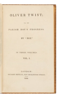 DICKENS, Charles (1812-1870). Oliver Twist; or, the Parish Boy's Progress. By "Boz". London: Richard Bentley, 1838.