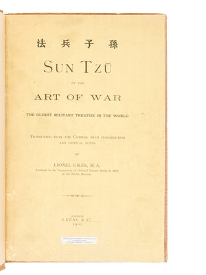 [SUN TZU (ca 771-256 BCE)]. GILES, Lionel (1875-1958), translator. Sun Tzu on the Art of War, the Oldest Military Treatise in the World, Translated from the Chinese with Introduction and Critical Notes. London: Luzac, 1910.