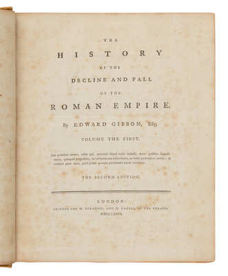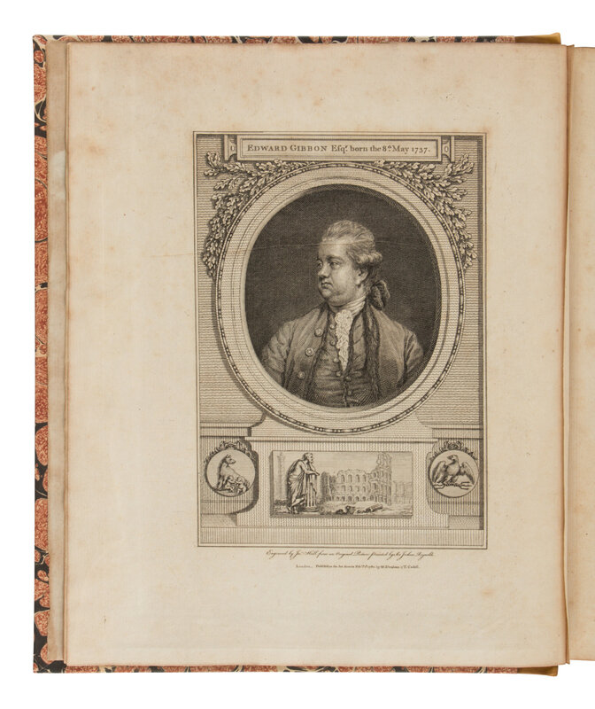 6 volumes, 4to (264 x 213 mm). Half-titles; engraved frontispiece portrait of Gibbon by John Hall after Joshua Reynolds, 2 large engraved folding maps; errata in vols.2 and 3; General Index at end of vol.6. (Some spotting, mostly to preliminaries including titles, offsetting and spotting to plates.) Modern calf-backed marbled boards. Provenance: Samuel Herbert (armorial bookplate); Rev. W.E. Taylor (gift inscription); presented to the London Church Missionary Society (stamp on front free endpaper).