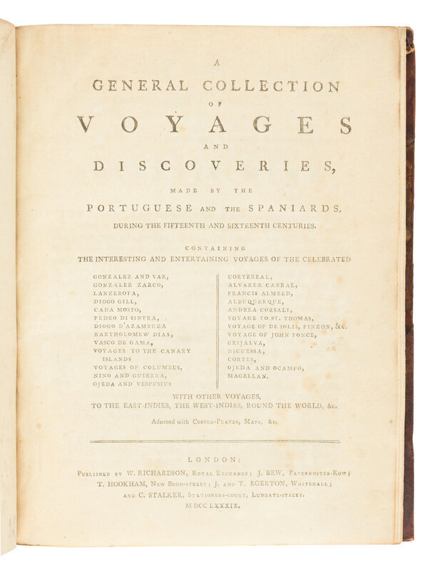 [TRAVEL & EXPLORATION]. A General Collection of Voyages and Discoveries, made by the Portuguese and the Spaniards, during the fifteenth and sixteenth centuries. London: W. Richardson, J. Bew, et al, 1789.
