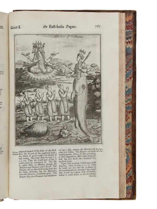 6 volumes, folio (349 x 229 mm). List of subscribers with engraved arms of subscribers, 2 engraved portraits, 165 engraved plans, maps, views and diagrams, many double-page, some folding and mounted on guards, and numerous engraved illustrations in the text. (Front black in vol.1 detached.) Contemporary calf, covers with single gilt fillet border, spines in 7 compartments with 6 raised bands, morocco lettering-pieces gilt in second, gilt-lettering in third, others gilt-tooled, edges speckled red (joints splitting, spine ends worn, extremities rubbed). Provenance: Robert Raymond, 2nd Baron Raymond, ca 1717–1756 (bookplate).