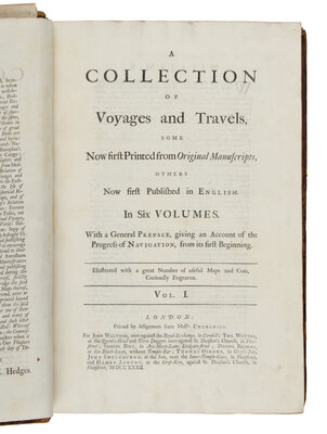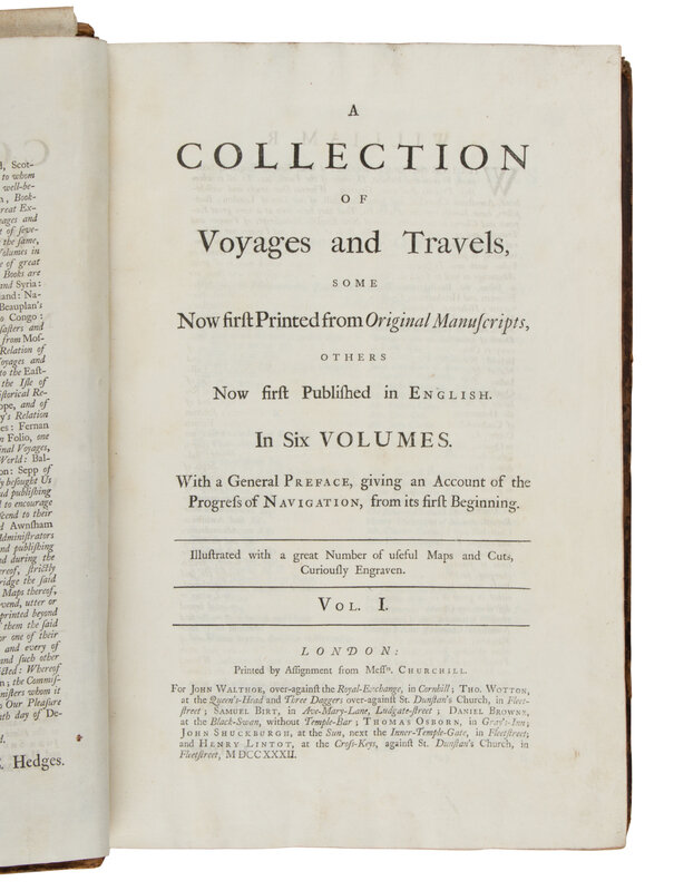 [TRAVEL & EXPLORATION]. CHURCHILL, Awnsham (d. 1728) and John (fl. 1695). A Collection of Voyages and Travels, some now first printed from original manuscripts, others now first published in English. London: Churchill for John Walthoe [&c], 1732.