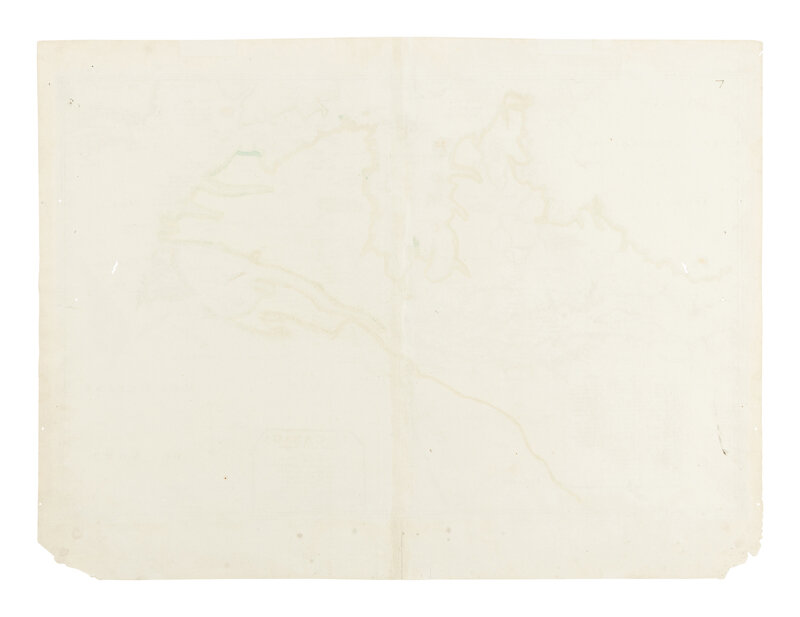 Engraved map hand-outlined in color, 432 x 584 mm. (Centerfold reinforced on verso, small corner tears in lower margin, some spotting or toning at edges.)