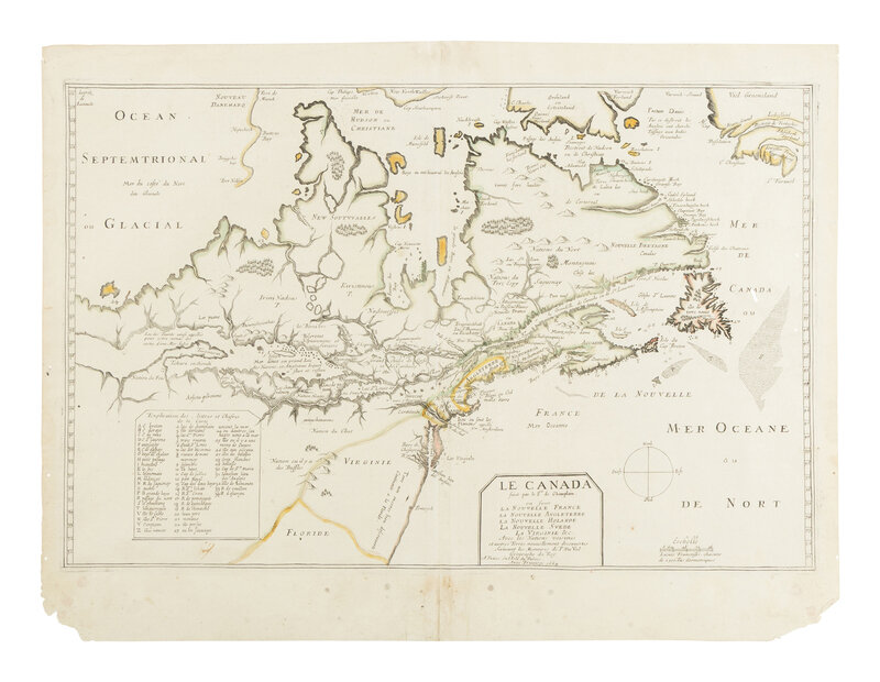 [MAP]. CHAMPLAIN, Samuel De (1574-1635) and Pierre DU VAL (1619-1683). Le Canada Faict par le Sr de Champlain ou sont La Nouvelle France, La Nouvelle Angleterre, La Nouvelle Holande, La Nouvelle Suede, La Virginie &c. Avec les Nationes Voisines. Paris, ca 1664.