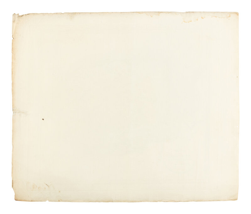 Engraved map with hand-coloring, 591 x 711 mm. (Soiling and toning to margins, upper margin dampstained, several short closed tears near edges, a few repaired on verso.)