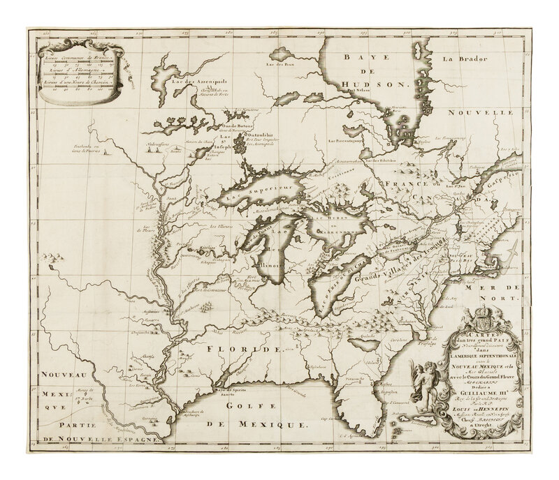 SANSON, Nicolas (1600-1667). Le Canada ou Nouvelle France &c. Utrecht, 1683. Engraved map with hand-coloring, 216 x 318 mm. (Hinged to mat.)