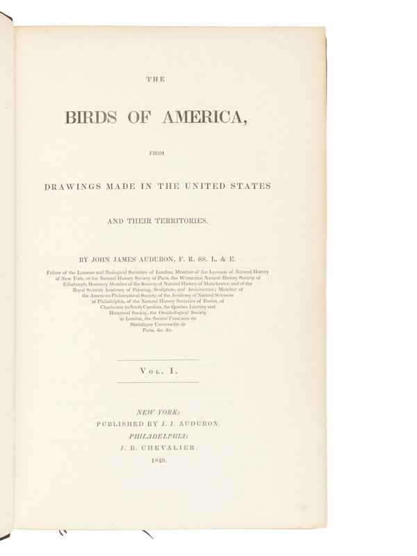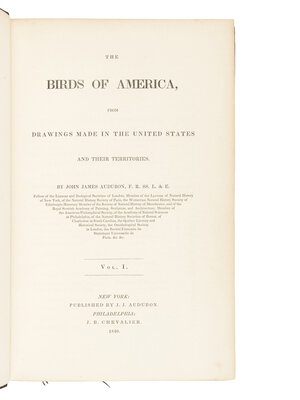 [AMERICANA]. AUDUBON, John James (1785-1851). The Birds of America, from Drawings Made in the United States and their Territories. New York and Philadelphia: J.J. Audubon and J.B. Chevalier, [1839-] 1840-1844.