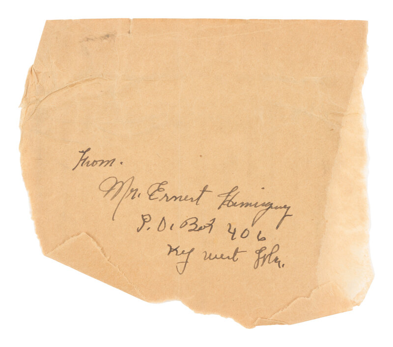 [With:] part of the original envelope that contained the book, Hemingway's Key West address in an unknown hand.