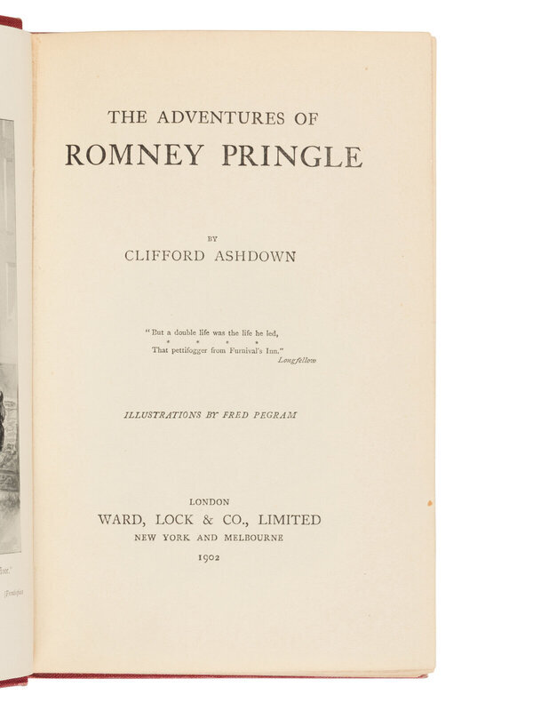 ASHDOWN, Clifford [pseudonym of FREEMAN, Richard Austin (1862-1943) and James John PITCAIRN (1860-1936)]. The Adventures of Romney Pringle. London: Ward, Lock & Co., 1902.