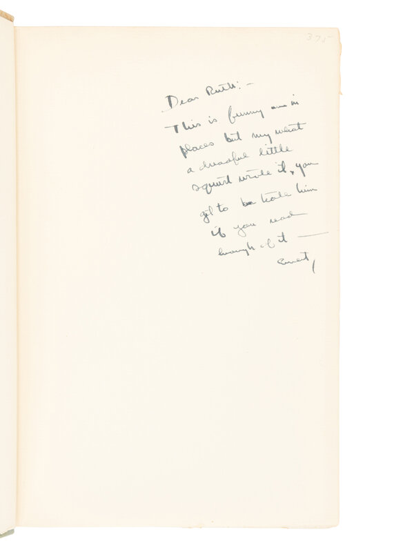 FIRST EDITION. INSCRIBED BY HEMINGWAY TO HIS COUSIN, RUTH LOWRY: "Dear Ruth: – This is funny in places but my what a dreadful little squirt wrote it. You get to hate him if you read enough of it. – Ernest."