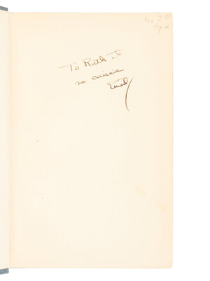 8vo. (Spotting throughout.) Original blue cloth gilt (spine lightly sunned, front joint a bit skewed). Provenance: Bennett Schneider Book Seller, Kansas City (booksellers ticket); Ruth White Lowry (1884-1974), Hemingway's cousin and Kansas City native (recipient of Hemingway's inscription).