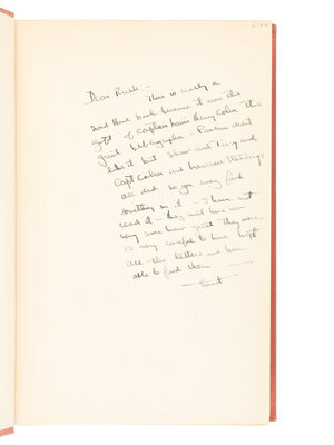 8vo. Original red cloth gilt (sunning to spine and boards). Provenance: Captain Louis Henry Cohn (d. 1953), a bookseller and Hemingway's first bibliographer (his booksellers' ticket ("House of Books") on rear pastedown); presented to Ernest and Pauline Hemingway; given to Ruth White Lowry (1884-1974), Hemingway's cousin and Kansas City native (recipient of Hemingway's inscription).