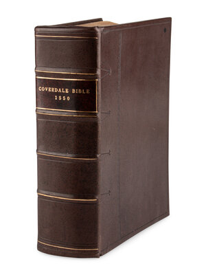 [BIBLE, in English, Coverdale's version]. The Whole Byble. That is the Holy Scripture of the Olde and Newe Testament Faythfully Translated into Englyshe by Myles Coverdale. Zurich: Christoph Froschauer and S. Mierdman? for Andrewe Hester, 1550.