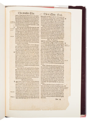 FROM THE FIRST WHOLE BIBLE IN ENGLISH. "The Coverdale Bible of 1535 has been, and continues to be, especially coveted by collectors. Scarce and very expensive, it is a natural subject for a leaf book" (Joel Silver, "Catalog of the Exhibition," in: Disbound and Dispersed 33).
