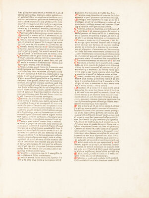 LIBRARY EDITION, CONTAINING: a single leaf, printed in Mainz by Johann Gutenberg in 1469, royal folio (368 x 311 mm), ff. 240, rubricated single-initials, on Gallizani paper with watermark. Provenance of the original incomplete copy of the Catholicon which this leaf was extracted from listed on the prospectus: Sir Hans Sloane (prior to 1753); acquired by the Trustees of the British Museum in 1804; deaccessioned to Henry W. Poor; sold, his sale, November 1908; purchased by Alvin W. Krech. ISTC ib00020000 (issue b [priority established]).