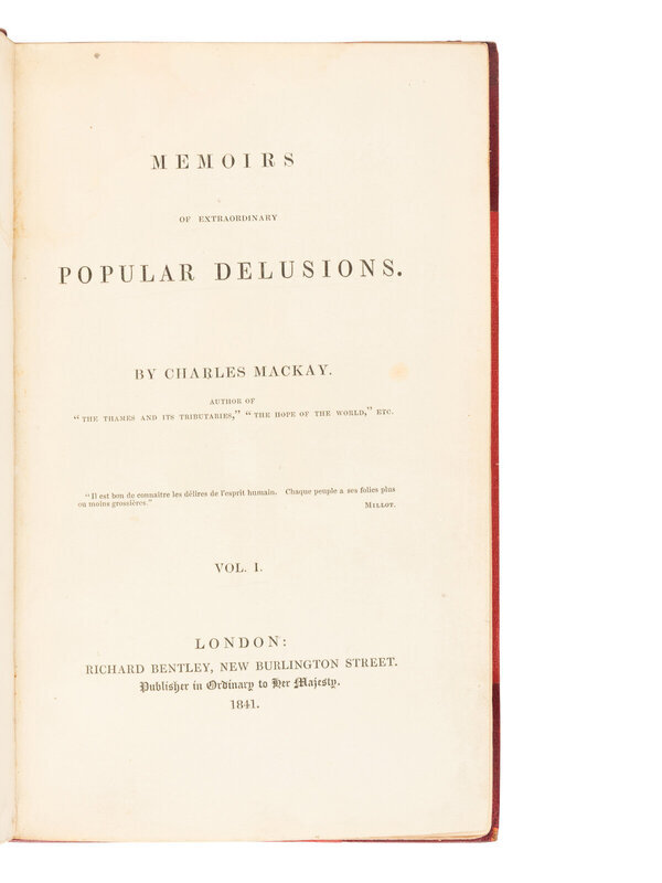MACKAY, Charles (1814-1889). Memoirs of Extraordinary Popular Delusions. London: Richard Bentley, 1841.
