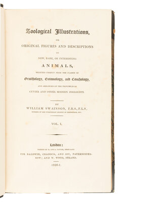 [NATURAL HISTORY]. SWAINSON, William John (1789-1855). Zoological Illustrations, or Original Figures and Descriptions of New, Rare, and Interesting Animals... London: Baldwin, Cradock, and Joy, 1820-1833.