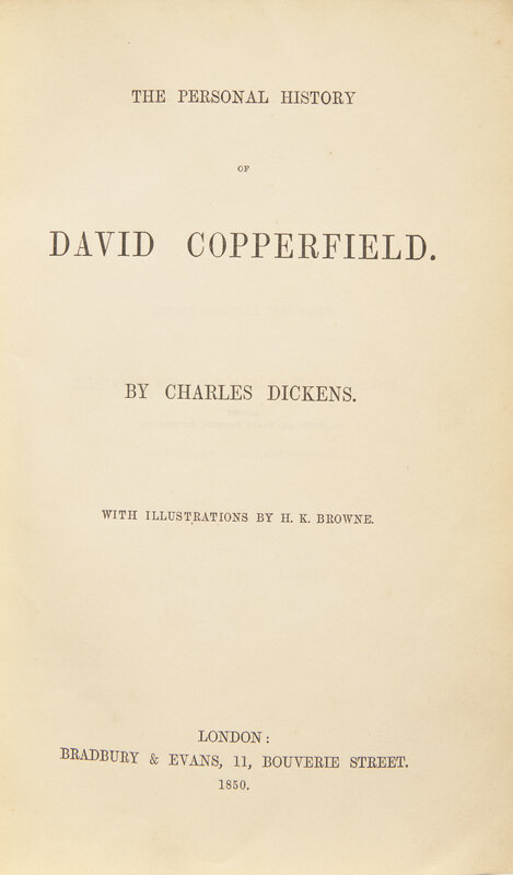 DICKENS, Charles (1812-1870). The Personal History of David Copperfield. London: Bradbury & Evans, 1850.