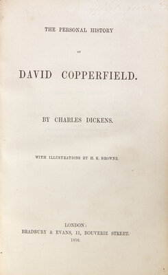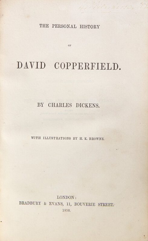 DICKENS, Charles (1812-1870). The Personal History of David Copperfield. London: Bradbury & Evans, 1850.