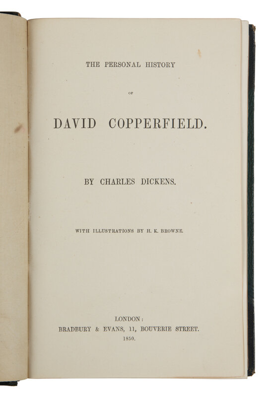 DICKENS, Charles (1812-1870). The Personal History of David Copperfield. London: Bradbury & Evans, 1850.