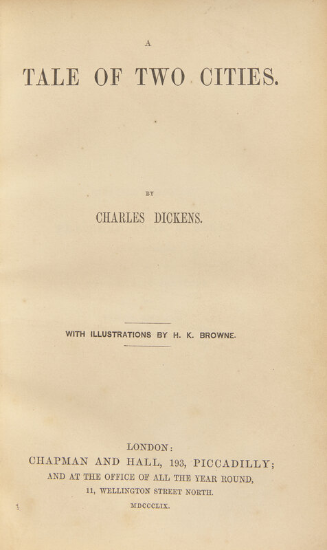 DICKENS, Charles (1812-1870). A Tale of Two Cities. London: Chapman and Hall, 1859.