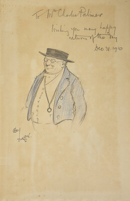 Charles Herbert Palmer (1861-1937) was the second son of Samuel Palmer and grandson of George Palmer, founder of the Huntley & Palmer biscuit empire. Charles, like his father, became a director of the biscuit company. Charles was close friends with Cecil Aldin and a member and supporter of the South Berks Hunt.