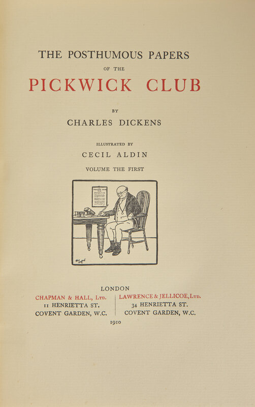 DICKENS, Charles (1812-1870). The Posthumous Papers of the Pickwick Club. London: Chapman & Hall, Ltd./Lawrence & Jellicoe, Ltd., 1910.