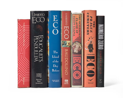 6) The Prague Cemetery. London: Harvill Secker, [2011]. First English edition. 8vo. Publisher's black paper-covered boards, stamped in silver; in publisher's unclipped dust-jacket. Signed by Eco on title-page.