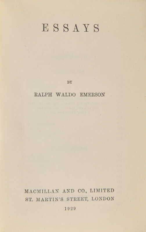 EMERSON, Ralph Waldo (1803-1882). Essays. London: Macmillan and Co., Limited, 1929.