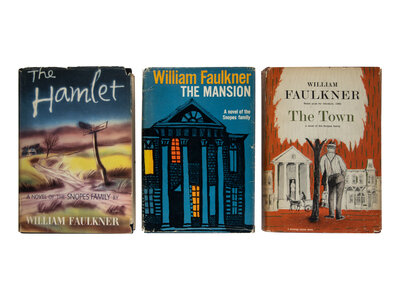 FAULKNER, William (1897-1962). [Snopes Trilogy]. The Hamlet. 1940. -- The Town. 1957. -- The Mansion. 1960. All New York: Random House.