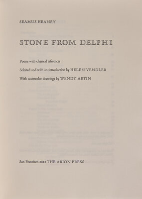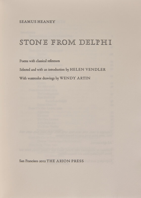 [FINE PRESS - ARION PRESS]. HEANEY, Seamus (1939-2013). Stone From Delphi. San Francisco: The Arion Press, 2012.