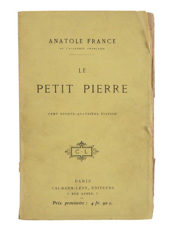 FRANCE, Anatole (1844-1924). Le Petit Pierre. Paris: Calmann-Levy, 1918.