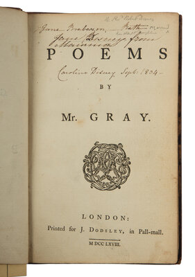 GRAY, Thomas (1716-1771). Poems. London: for J. Dodsley, 1768.