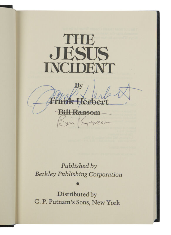 1) The Jesus Incident. New York: Berkley Publishing for G.P. Putnam's Sons, 1979. 8vo. Original cloth; dust jacket. SIGNED BY BOTH HERBERT AND BILL RANSOM.