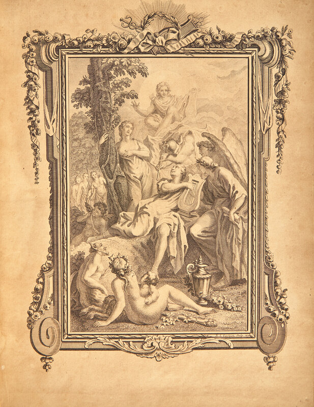 4to. Engraved frontispiece by B.L. Henriquez, engraved vignette on title-page by Le Grand, and 4 engraved plates, by Godfrey and others after Hubert-François Gravelot. (Frontispiece toned, scattered light spotting to plates and text.) Contemporary French crimson red morocco, decorated in gilt, all edges gilt, marbled endpapers (spine darkened, boards unevenly faded). Provenance: armorial book-plate of Thomas Browne on front paste-down; ownership inscription of English educator and classical scholar Henry Drury (1778-1841) on front blank ("E libris T Browne, dono dedit vir reverendus, Henricus Drury. Harroviae, 1823. fine copy, old French morocco binding"); from the family libraries of Americana collectors and bibliophiles Amor L. and Zachary T. Hollingsworth.