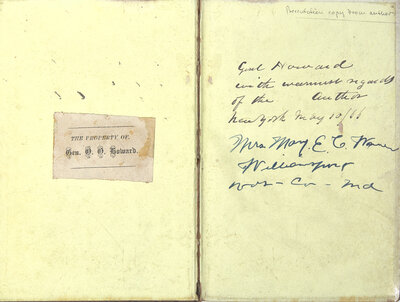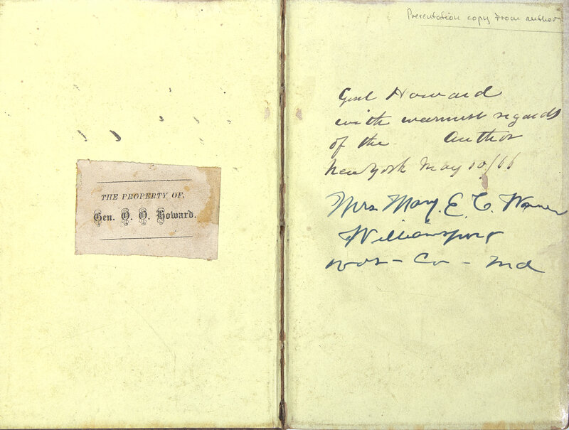 PRESENTATION COPY, INSCRIBED, on front free endpaper: "Genl Howard with warmest regards of the Author New York May 10/66." Oliver Otis Howard was a Union Army general who served in multiple commands, seeing action at Chancellorsville, Gettysburg, and in Sherman's Carolinas Campaign. Dubbed the "Christian General" for his deep evangelical piety, he was also a head of the Freedman's Bureau during Reconstruction.
