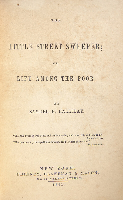 [HOWARD, Oliver Otis, Gen. (1830-1909), his copy]. -- HALLIDAY, Samuel (1812-1897). The Little Street Sweeper; or, Life Among The Poor. New York: Phinney, Blakeman & Mason, 1861.