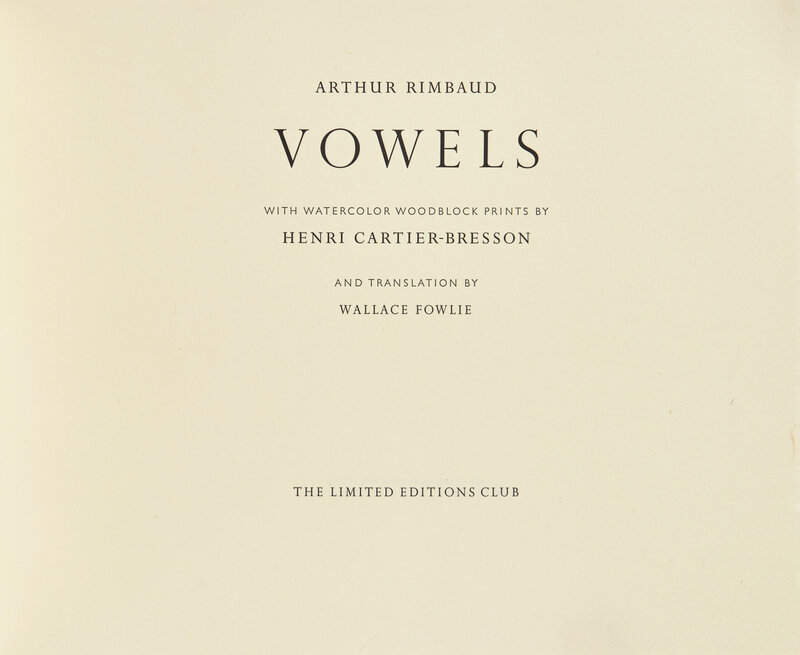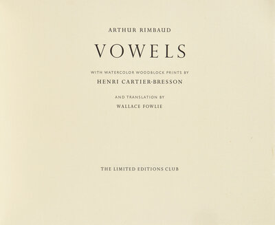 [LIMITED EDITIONS CLUB]. RIMBAUD, Arthur (1854-1891). Vowels. Translated by Wallace Fowlie. New York: The Limited Editions Club, 1996.