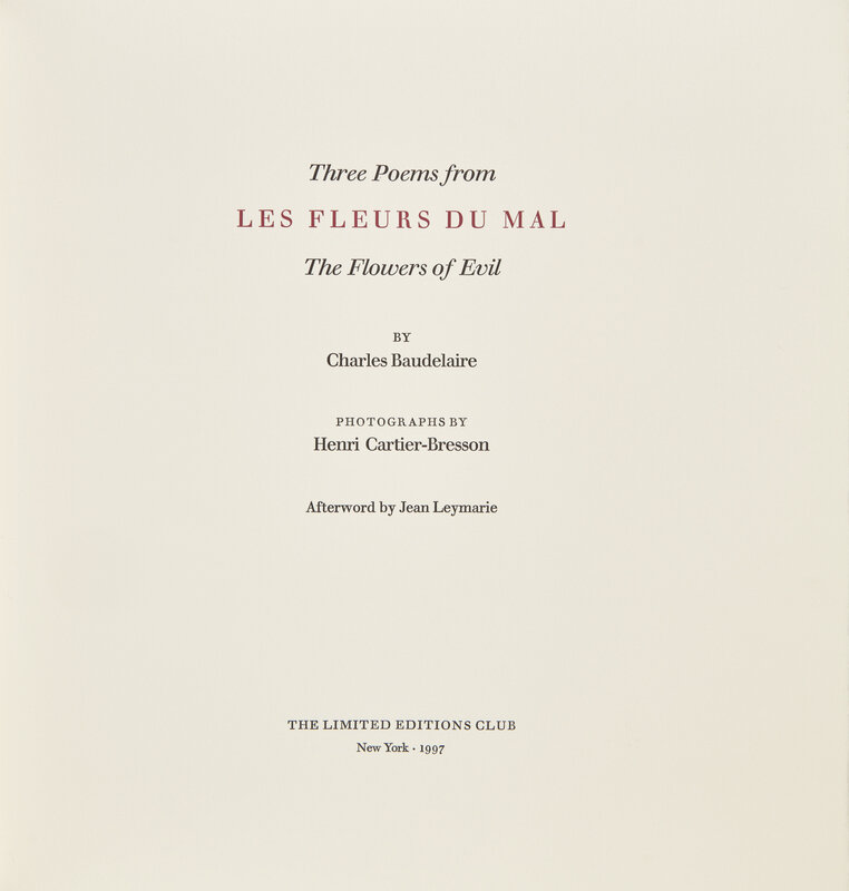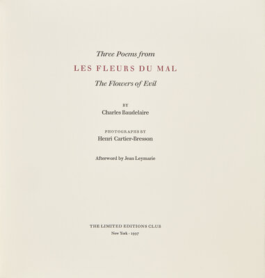 [LIMITED EDITIONS CLUB]. BAUDELAIRE, Charles (1821-1867). Three Poems from Les Fleurs du Mal The Flowers of Evil. New York: The Limited Editions Club, 1997.