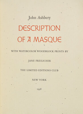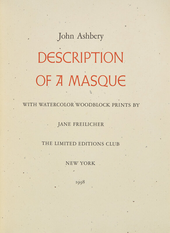 [LIMITED EDITIONS CLUB]. ASHBERY, John (1927-2017). Description of a Masque. New York: The Limited Editions Club, 1998.