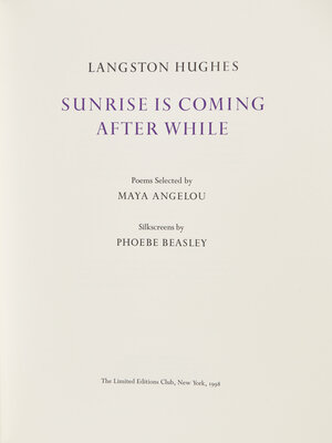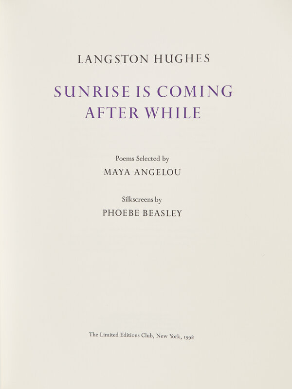 [LIMITED EDITIONS CLUB]. HUGHES, Langston (1901-1967). Sunrise is Coming After While. Edited by Maya Angelou. New York: The Limited Editions Club, 1998.