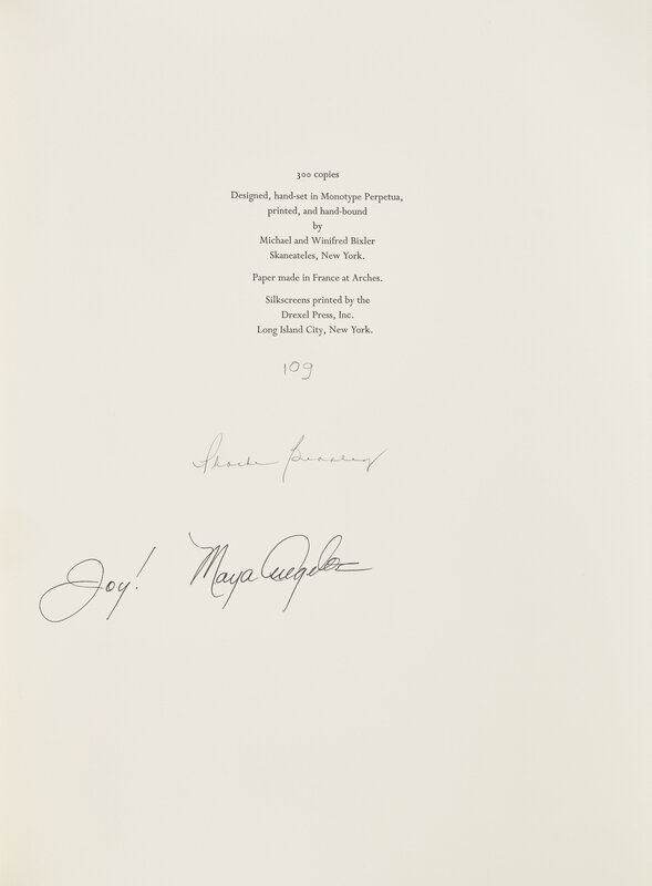 LIMITED EDITION, number 109 of 300 copies, signed by Angelou and Beasley.