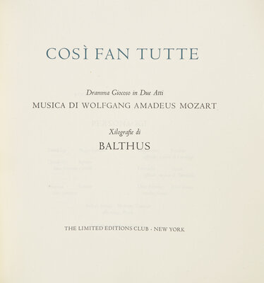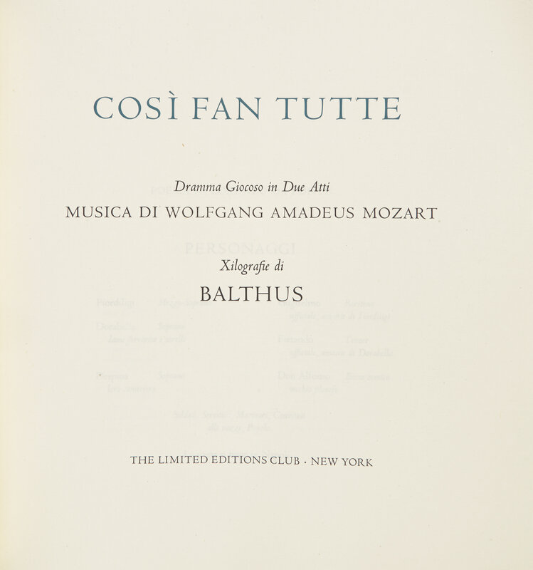 [LIMITED EDITIONS CLUB]. MOZART, Wolfgang Amadeus (1756-1791). Cosi Fan Tutte. New York: The Limited Editions Club, [2001].