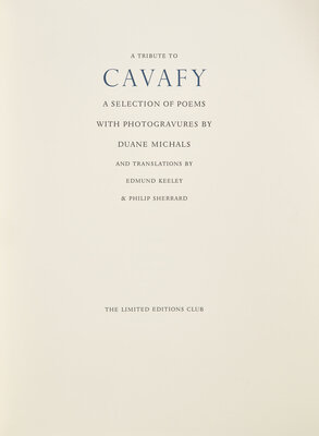 [LIMITED EDITIONS CLUB]. CAVAFY, Constantine (1863-1933). A Tribute to Cavafy. Translated by Edmund Keely and Philip Sherrard. [New York:] The Limited Editions Club, [2003].
