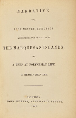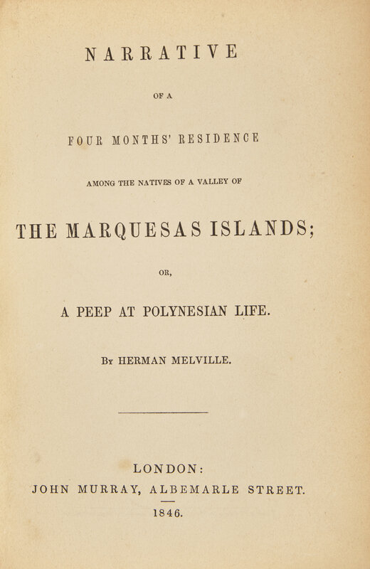 MELVILLE, Herman (1819-1891). Narrative of a Four Months’ Residence Among the Natives of a Valley of The Marquesas Islands; or a Peep at Polynesian Life. London: John Murray, 1846.