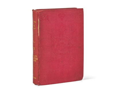 8vo. 16pp. ads (dated March 1846); half-title. (Front hinge repaired, scattered spotting to text.) Engraved map. Original red cloth [BAL binding B], stamped in blind and in gilt (splitting along front and rear joints, same lightly soiled and worn); red cloth slip case and chemise. Provenance: Frederick Gansevoort (ownership signature dated 26 May 1847 on front free endpaper); from the Herman Melville Collection of William S. Reese.