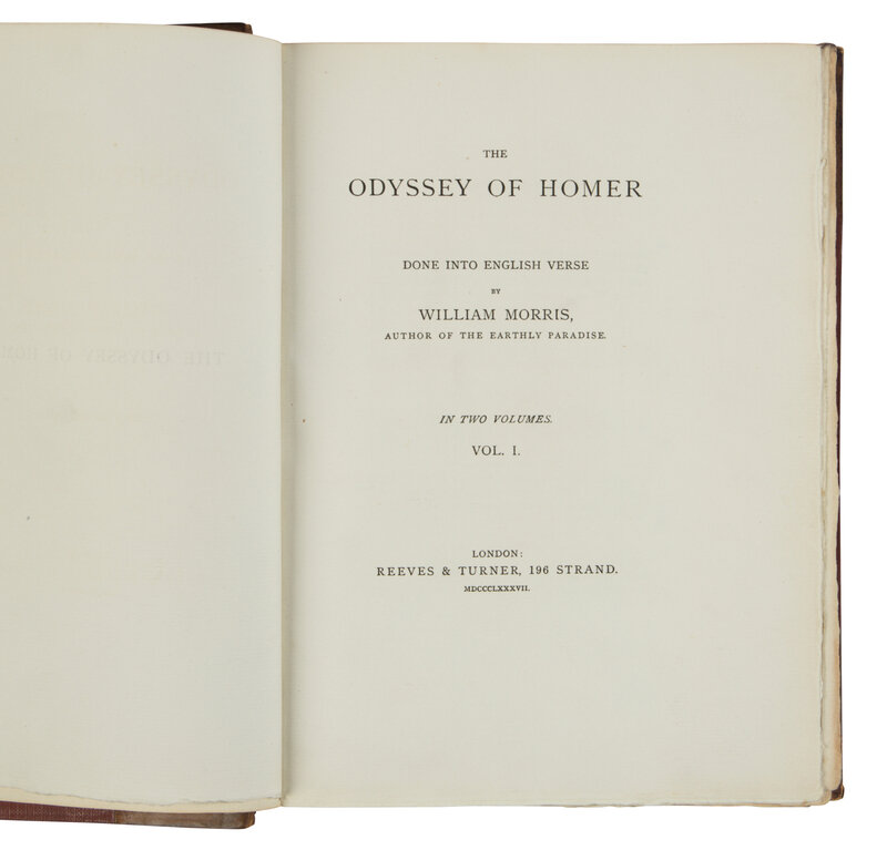 MORRIS, William (1834-1896), translator. The Odyssey Of Homer. London: Reeves & Turner, 1887.